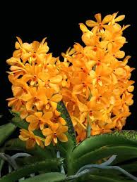 cm, mầu cam sẫm khác hẳn với Ascocentrum miniatum hoa thưa mầu vàng cam nhạt và