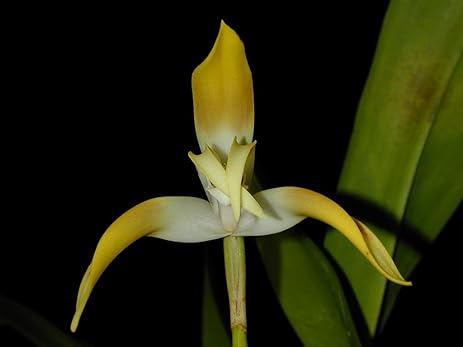 Vòi hoa cao 12 cm, hoa to 11-12 cm, có hương thơm. Các lá đài và cánh hoa màu vàng, trắng ở gốc. Các thùy bên của môi có những vân màu hạt dẻ, thùy giữa màu vàng, riềm môi trắng, gợn sóng.