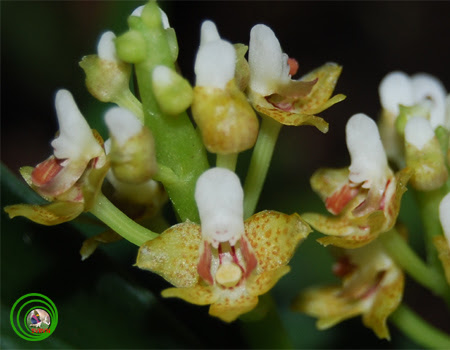 Mô tả: Phong lan, lá 6 chiếc. Chùm hoa dài 3-4 cm, hoa 10-15 chiếc to 1 cm, màu vàng tươi hay có đốm nâu. Cánh môi màu trắng, chia 3 thùy, 2 thùy bên đứng, cao, thùy giữa nhỏ. Cựa dài cong ra trước, nở vào mùa Xuân.