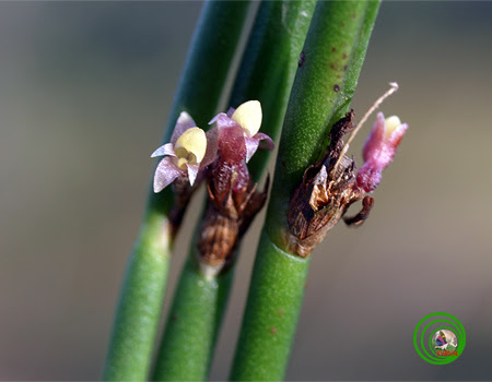 Mô tả : Lan sống phụ sinh dạng bụi, thân hình trụ trông giống như thân cói, dài 10 - 20cm, gốc có bẹ, đỉnh có 1 lá dào 2 - 3cm như tiếp tục của thân. Cụm hoa hình đầu nhỏ (đường kính 1cm). Hoa nhỏ màu vàng, có lông. Cánh môi cuộn lại, cựa rất ngắn.